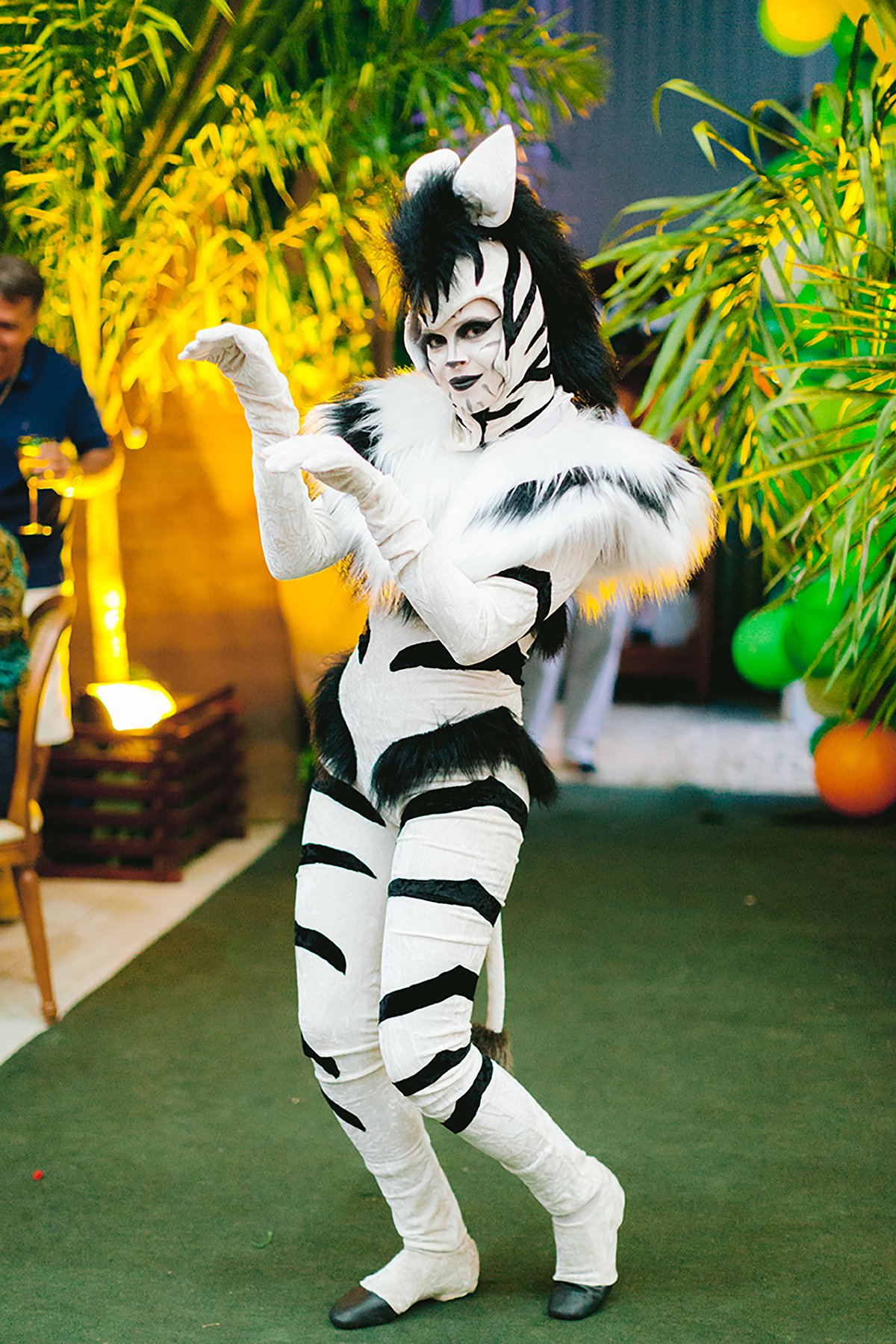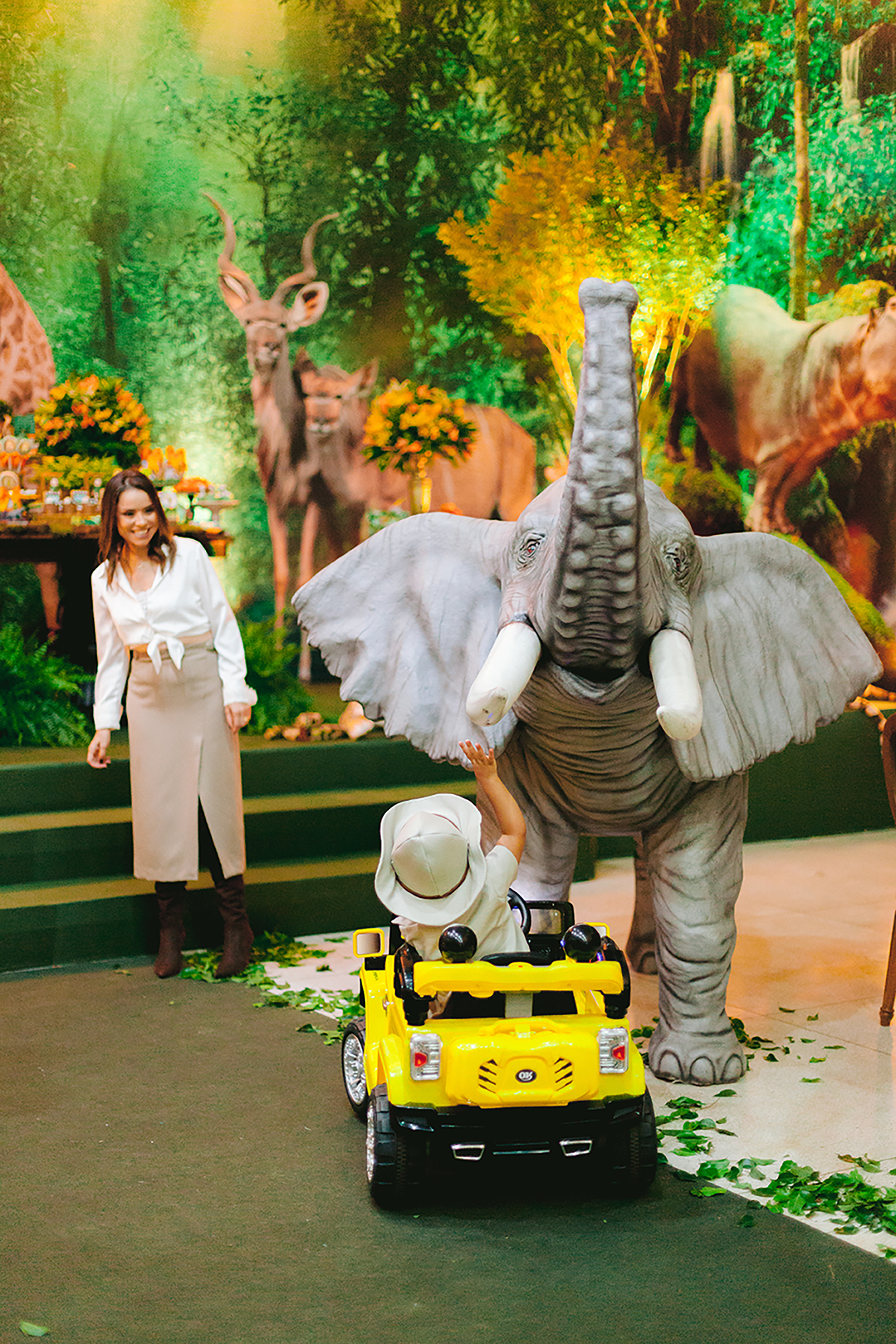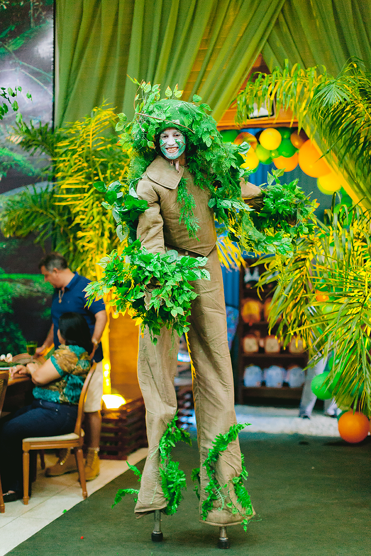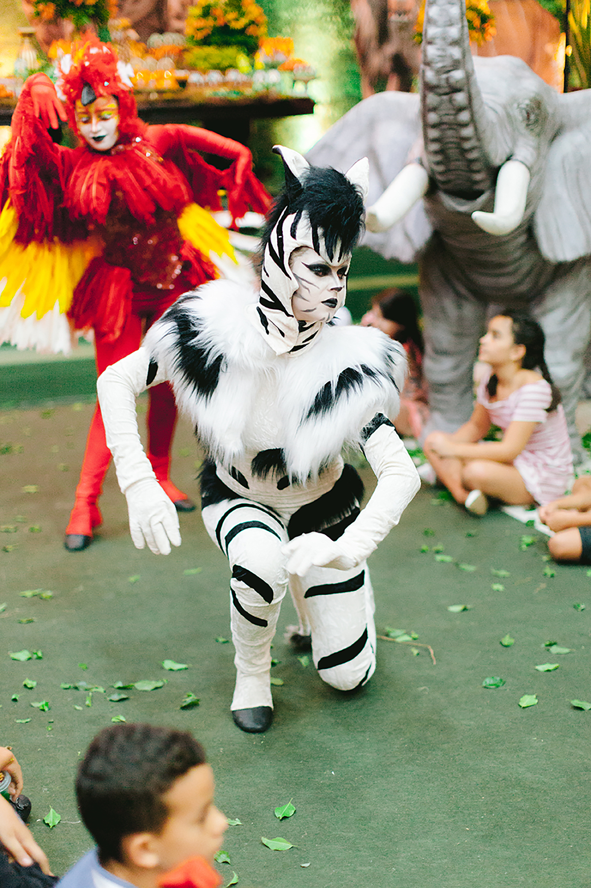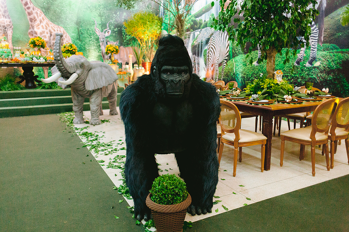 Atores vestidos de animais animaram a festa e foram grandes atrações, todo mundo queria uma foto com eles.